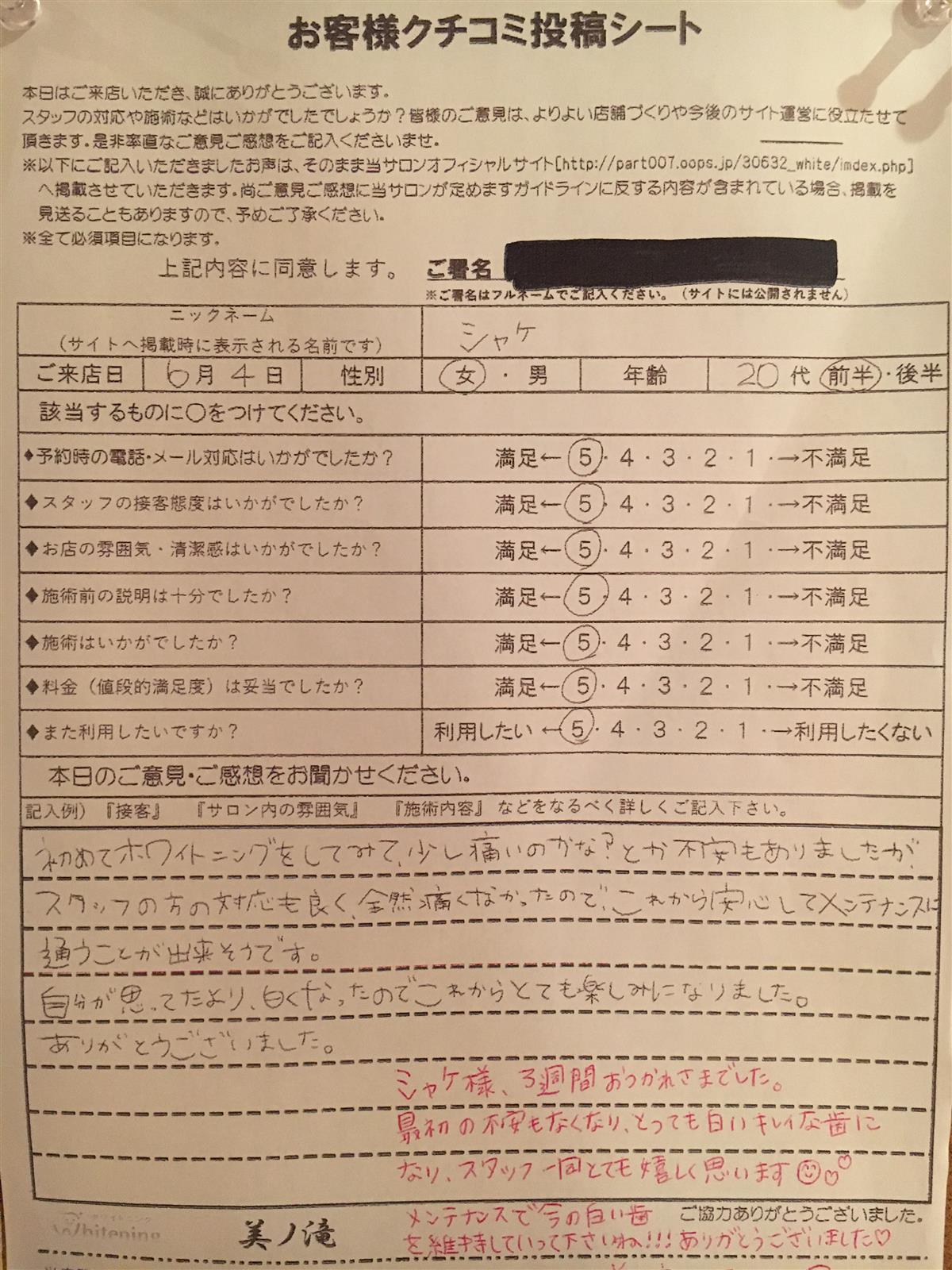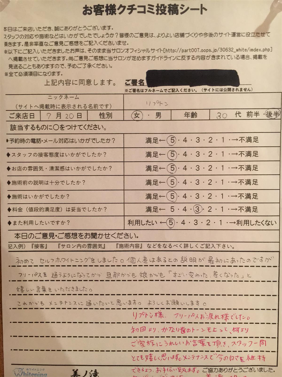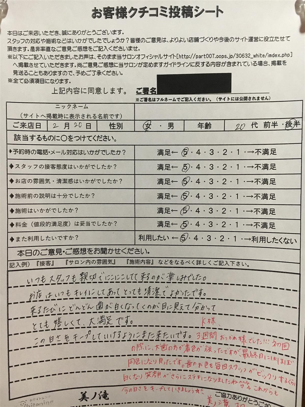 来るたびにどんどん歯が白くなっていくのが目に見えてわかってとてもうれしくて、大満足です。